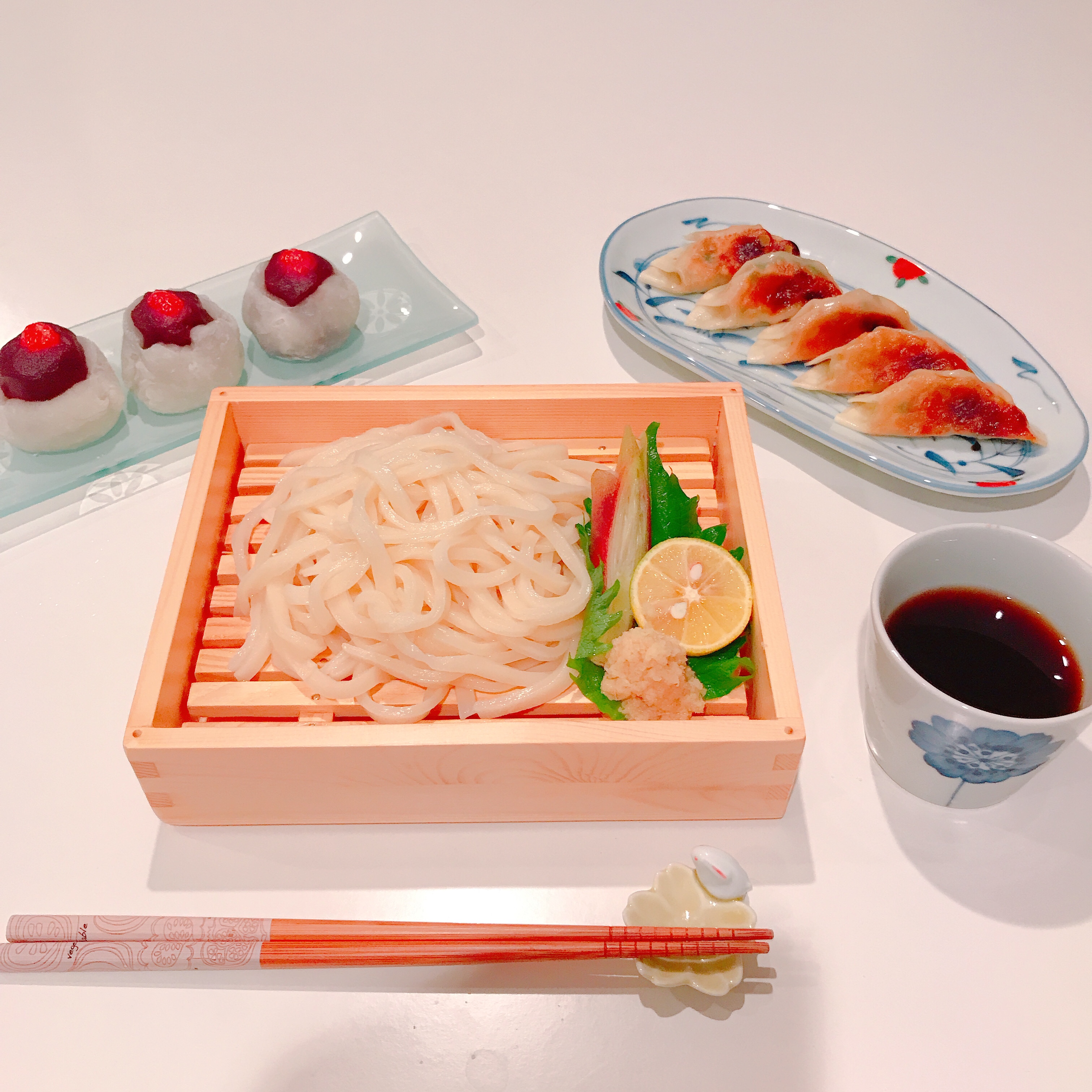 ” Home-style Vegetable or Meat Gyoza from scratch with Strawberry Daifuku”